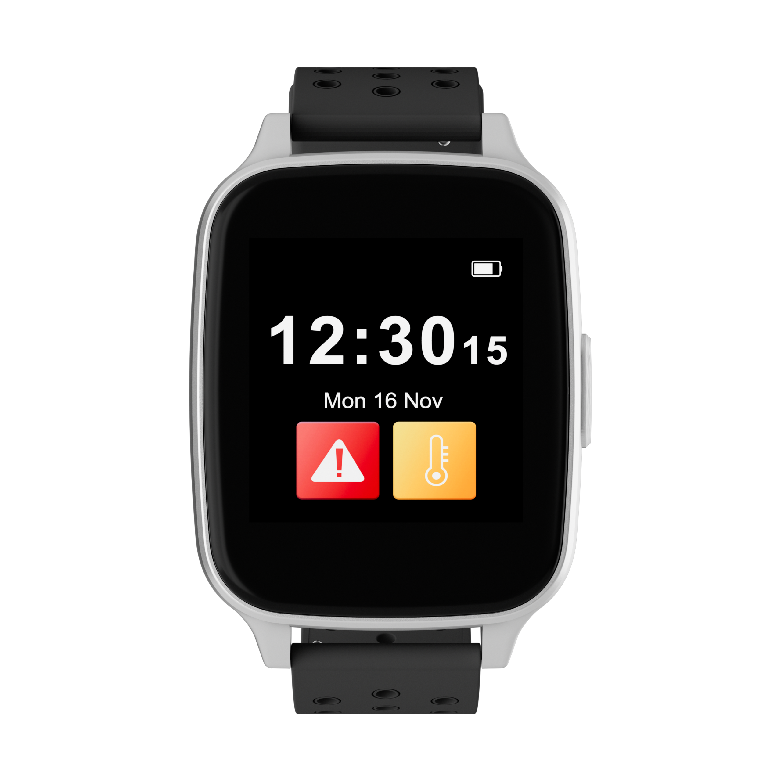 ■暑熱による身体リスクをお知らせする腕時計型ウェアラブルデバイス。